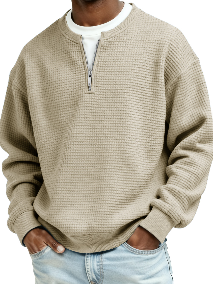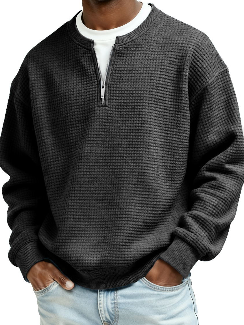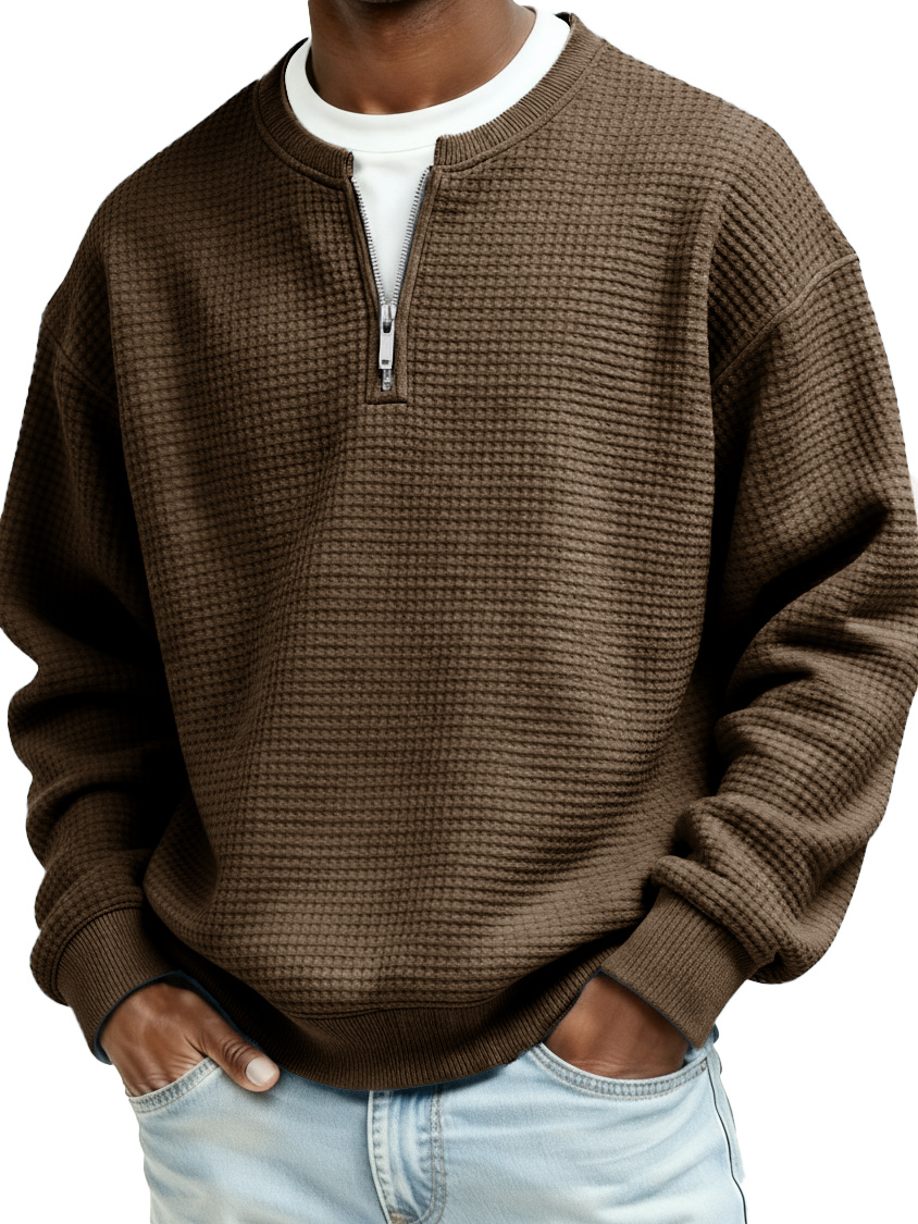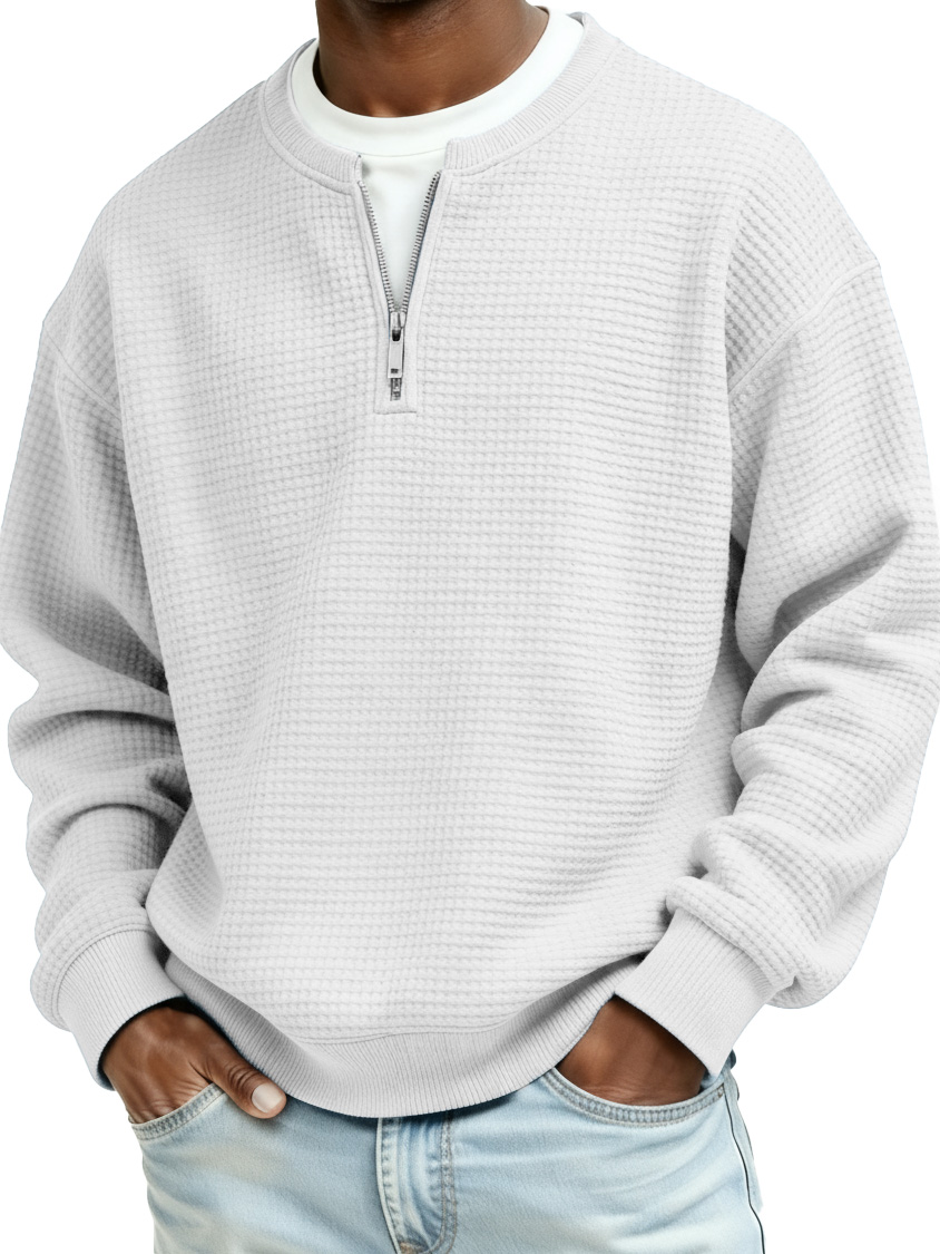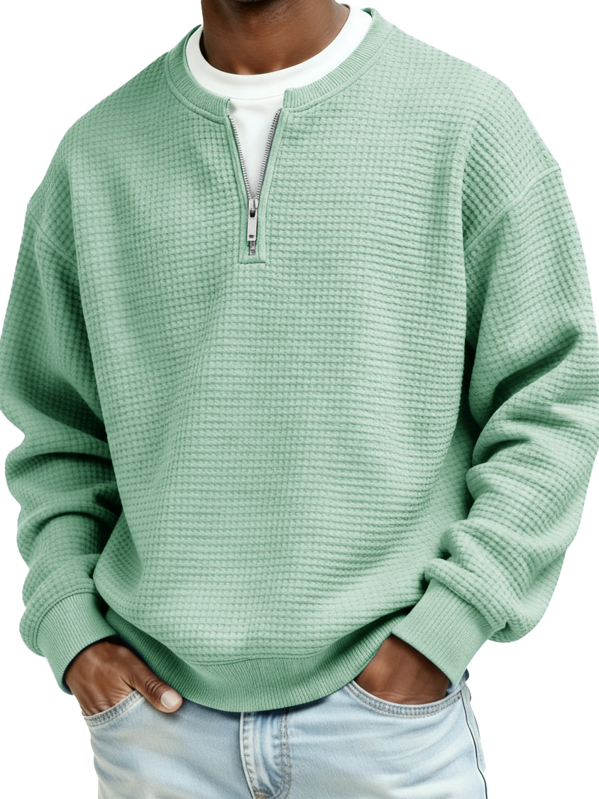 Men's Casual Faux Two-Piece Waffle Fabric Zipper Long-Sleeve Top