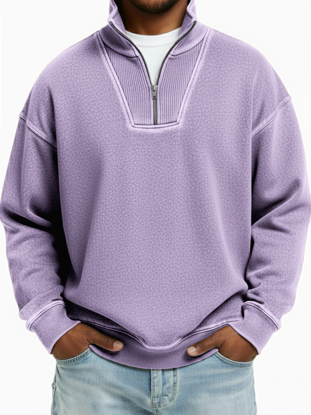 Men's Vintage Quarter-zip Patchwork Design Pullover
